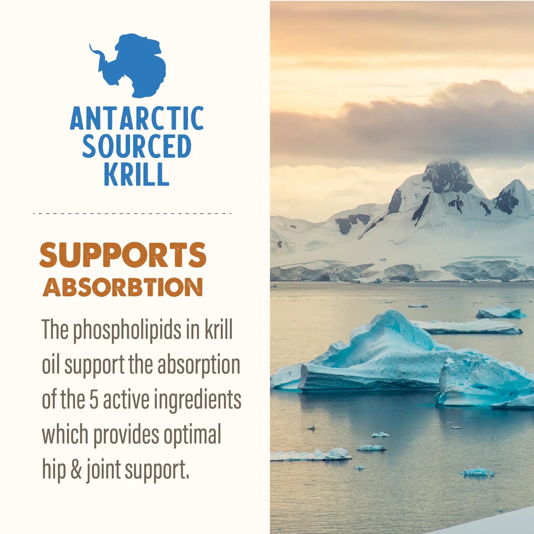 The addition of krill oil results in a unique joint product that can be more readily utilized by your dog or cat to help maintain the health of hips, joints, cartilage, collagen, and other cell structures of the body that are responsible for movement. This makes the supplement a great choice for an aging or senior pet who might need joint support.