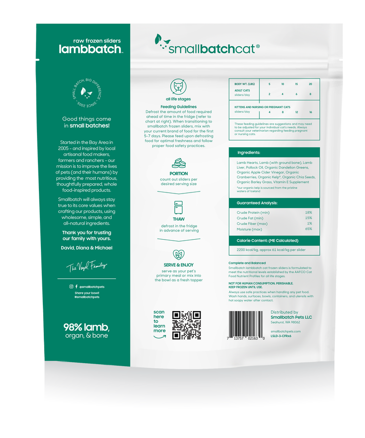 Smallbatch Frozen Lamb Sliders 3lb for Cats