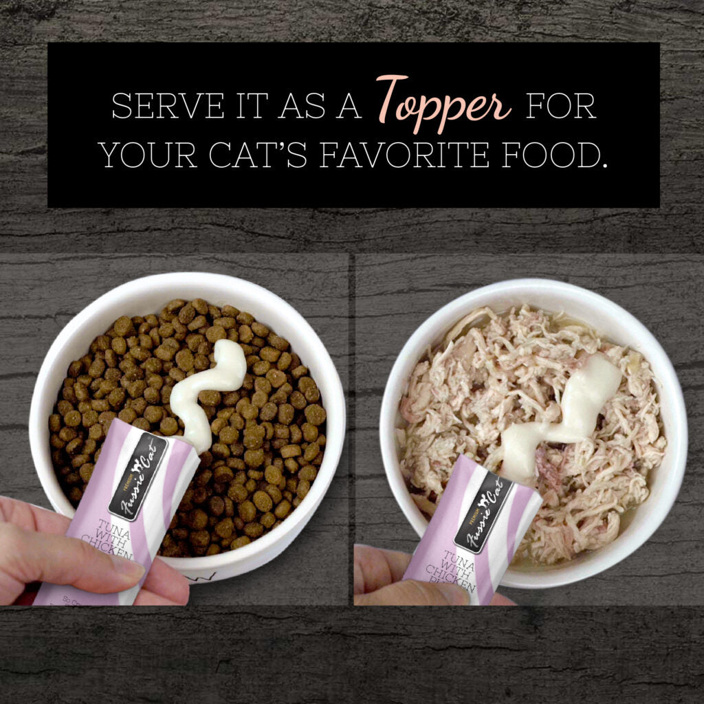 Indulge your feline friend with these delicious and creamy Fussie Cat Puree Cat Treats. They come in individually wrapped tubes of rich, velvety, and tasty puree in 8 delectable flavors*. Each recipe has zero grains, artificial preservatives, or colors, which makes it a purr-fect addition to your cat's healthy diet. Highly palatable, Fussie Cat Puree Cat Treats feature tuna or chicken to make it easy to share fun and joyful moments with your cat. Serve it as a topper for your cat's favorite meal or straight out of the tube as a delicious paw-some snack.