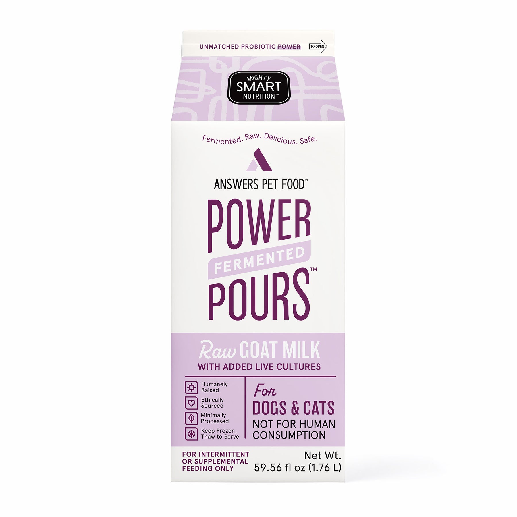 Answers Power Pours Fermented Raw Goat Milk is a powerful addition to each and every pet's diet no matter their age or health. With naturally occurring anti-inflammatory and hydrating benefits, Answers raw goat milk delivers a strong dose of probiotics to support gut health, improve immunity, and boost nutrient absorption. Pour it over your pet's main meal, give as a midday drink or freeze as a lickable treat - it's a powerhouse no matter how you serve it!