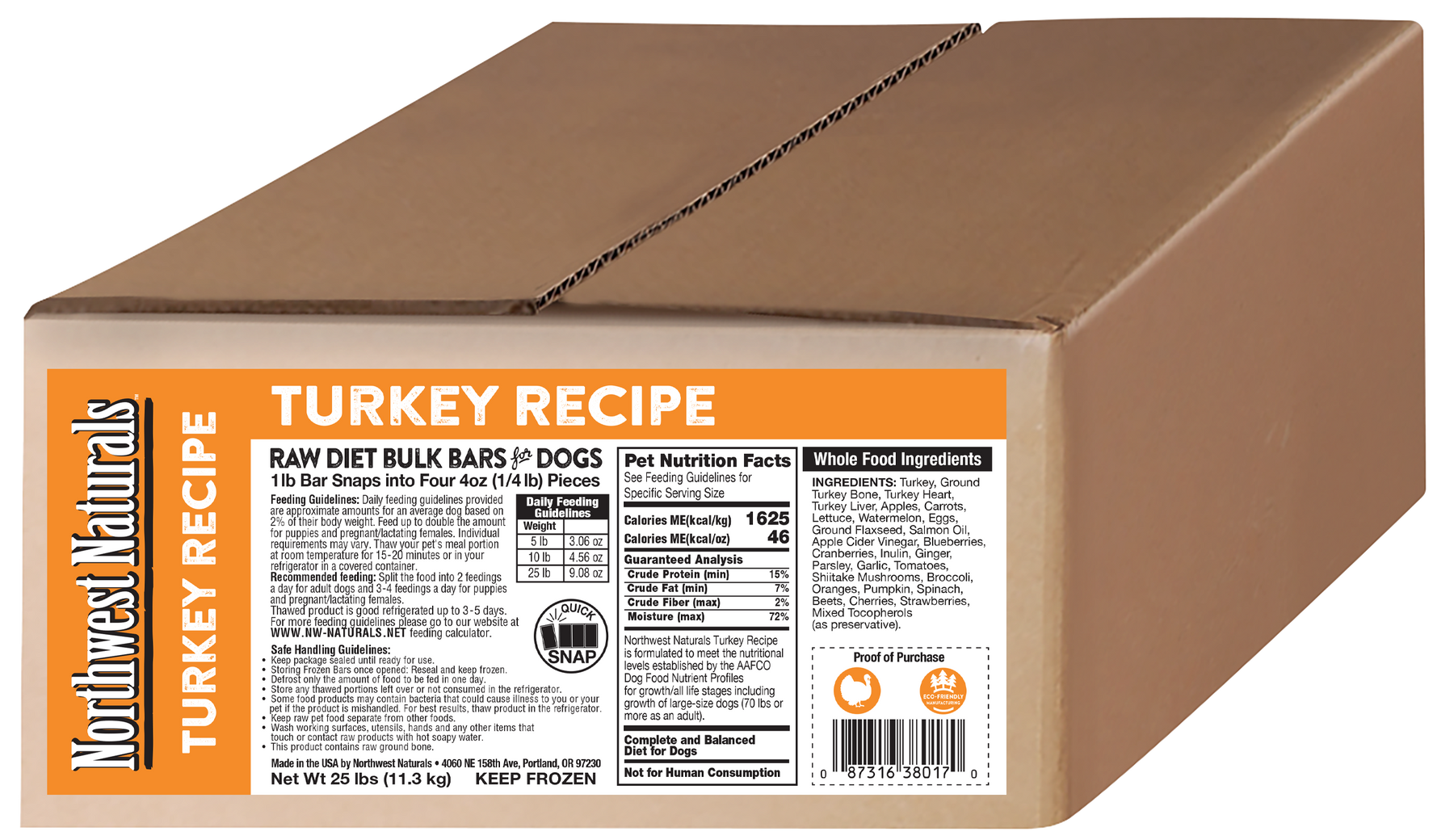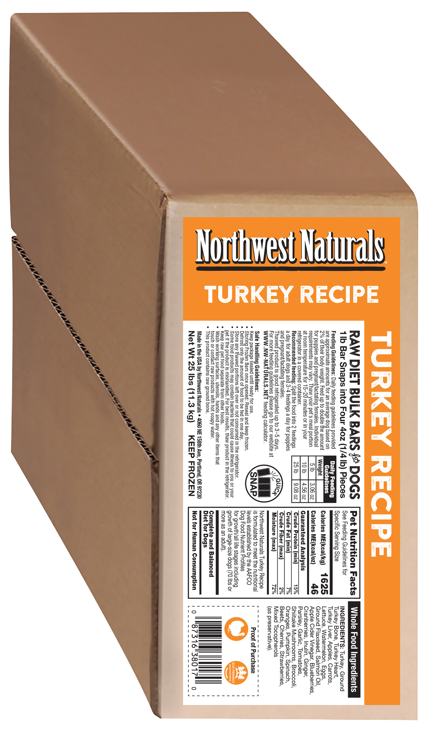 - Northwest Naturals Bulk Bars conveniently snap into ¼ pound pieces for easy serving and storage in your freezer. Great for individual meals for dogs.